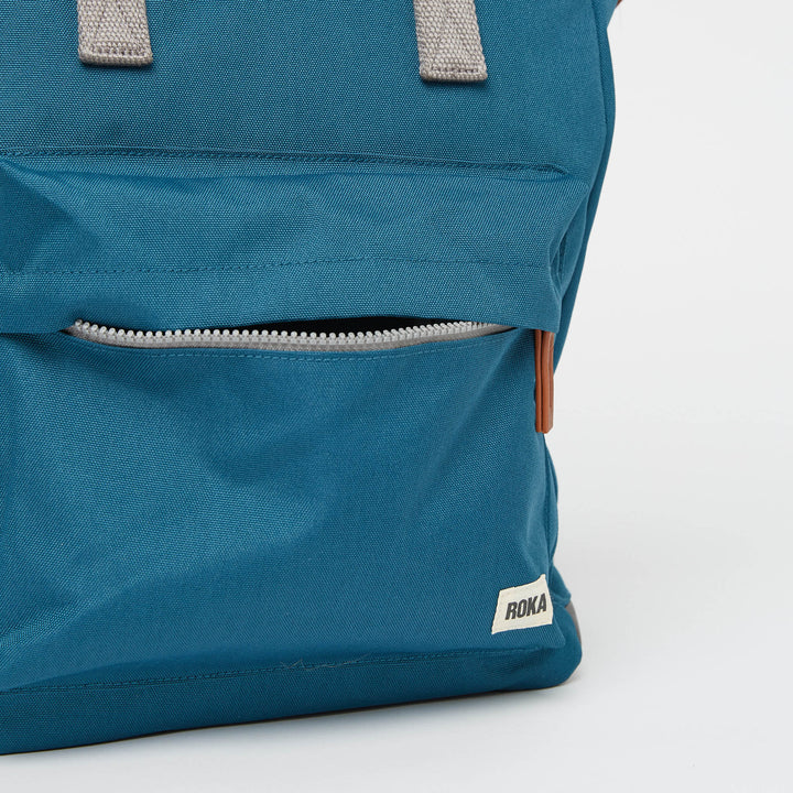 Made using the rPET sustainable Canvas, the bag has a matte feel. It is then coated to make it water-resistant and finally put through a softening process to make it have a softer feel. And our nylon material is weather-resistant, lightweight, and as durable as all our ROKA bags!