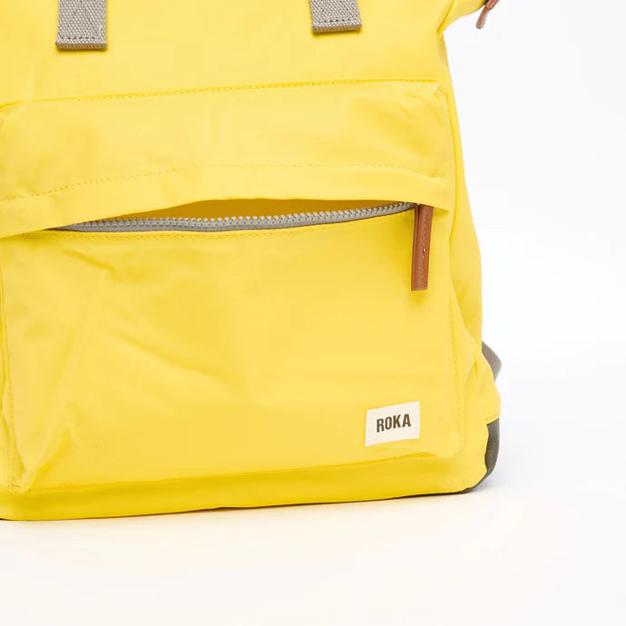 Made using the rPET sustainable Nylon, the bag has a smooth and glossy feel. It is then coated to make it water-resistant and finally put through a softening process to make it have a softer feel. And our nylon material is weather-resistant, lightweight, and as durable as all our ROKA bags!