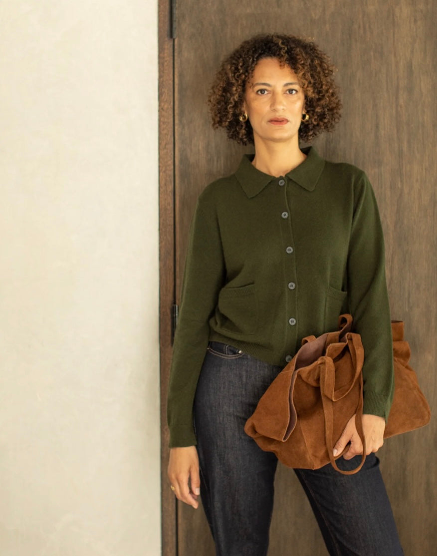 Eden is a soft knit cardigan with a structured twist. Designed with a neat collar, button-up front, and two patch pockets, it brings a tailored feel to a cosy classic. The soft yarn makes it comfortable for all-day wear, while the smart detailing elevates it beyond the everyday.