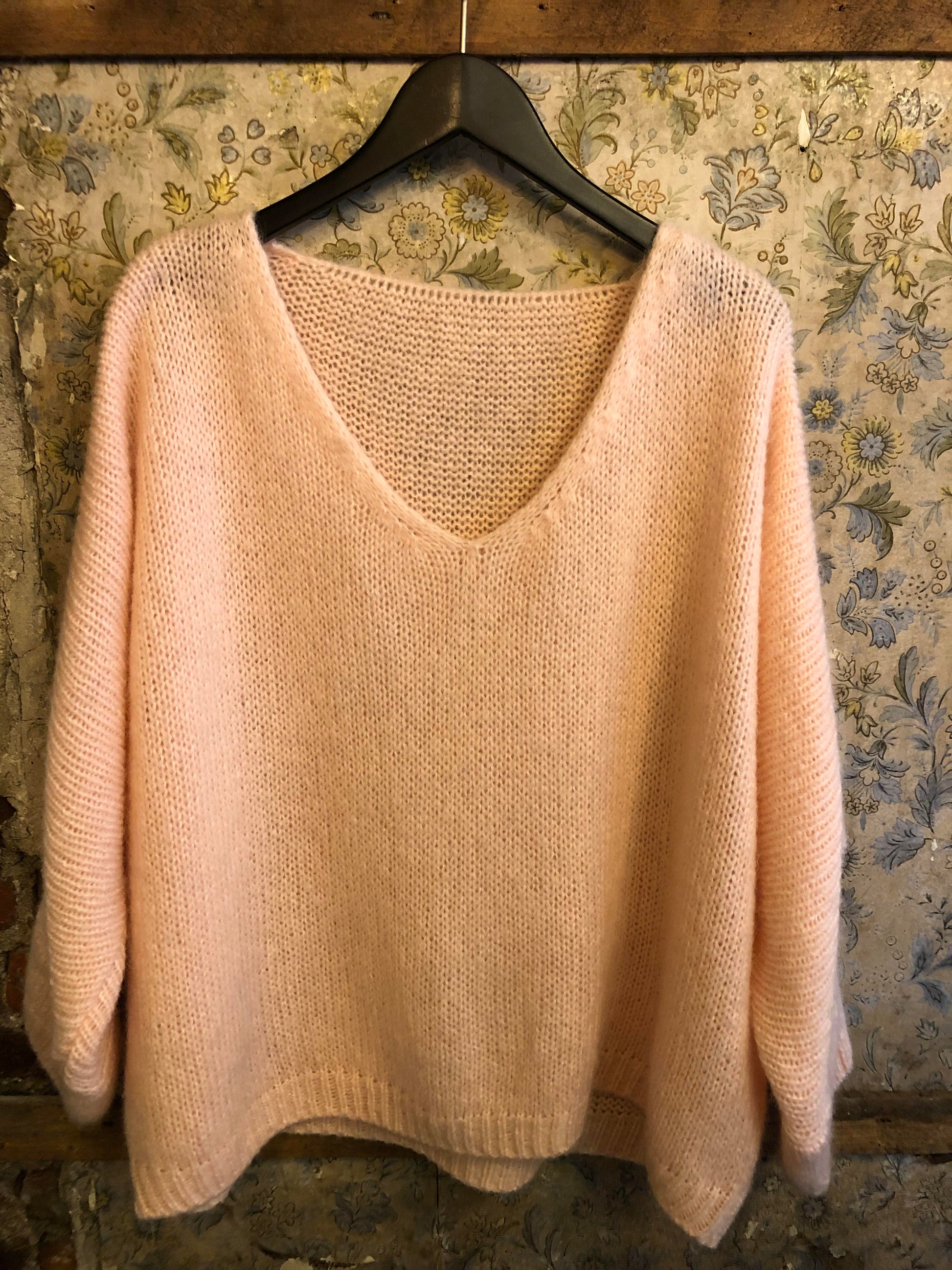 Italian Knitwear - Mohair mix knitted jumper - pale pink