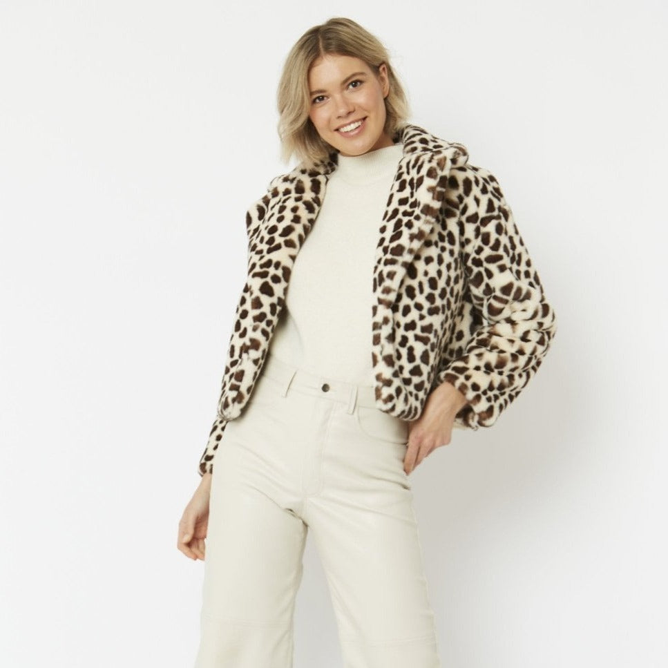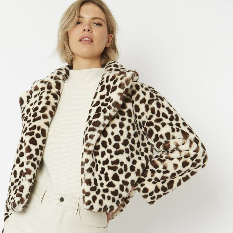 JAYLEY Animal Print Faux Fur Cropped Coat