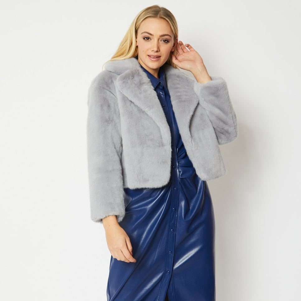 On-trend style and warmth, two of the key features of this faux fur cropped jacket, make it a timeless piece easy to wear all year round. Available in a variety of colours.