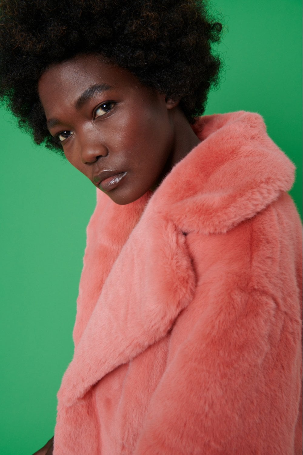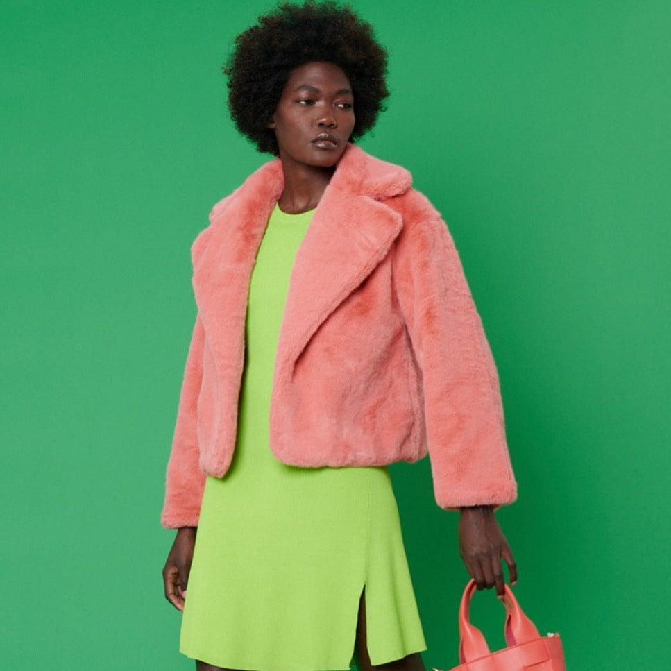 Jayley Pink Cropped Faux fur coat
