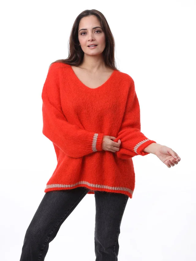 MOHAIR MIX JUMPER WITH METALLIC TRIM