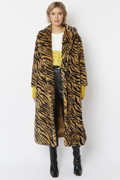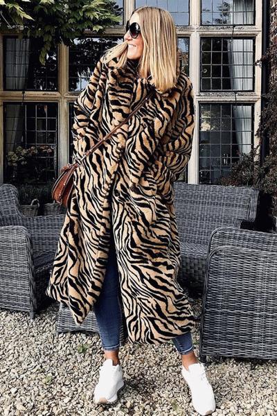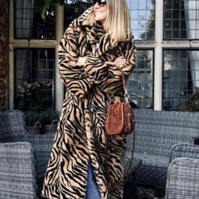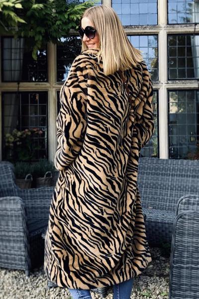Luxury Faux Fur Maxi Coat - Mocha Stripes