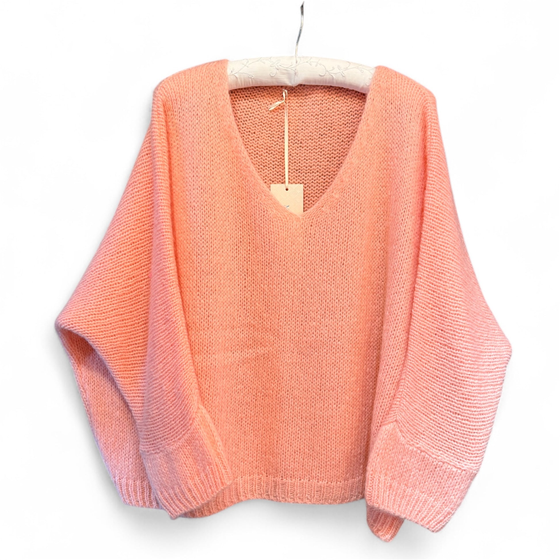 Made In Italy V-Neck Mohair Jumper in Peach