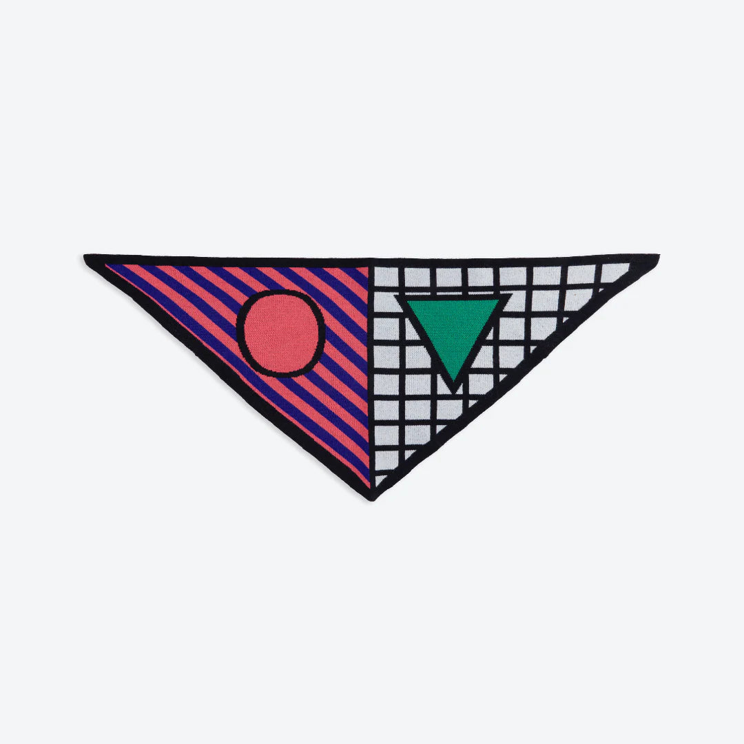 Step into bold geometry with the Memphis Wool Triangle Scarf. Inspired by the iconic Memphis design movement, this playful piece combines clashing-yet-harmonious patterns – hot pink stripes with a bold circle on one side, and a grid backdrop with a bright green triangle on the other. Striking, graphic, and bright, it’s the perfect way to bring an artful edge to your winter wardrobe.