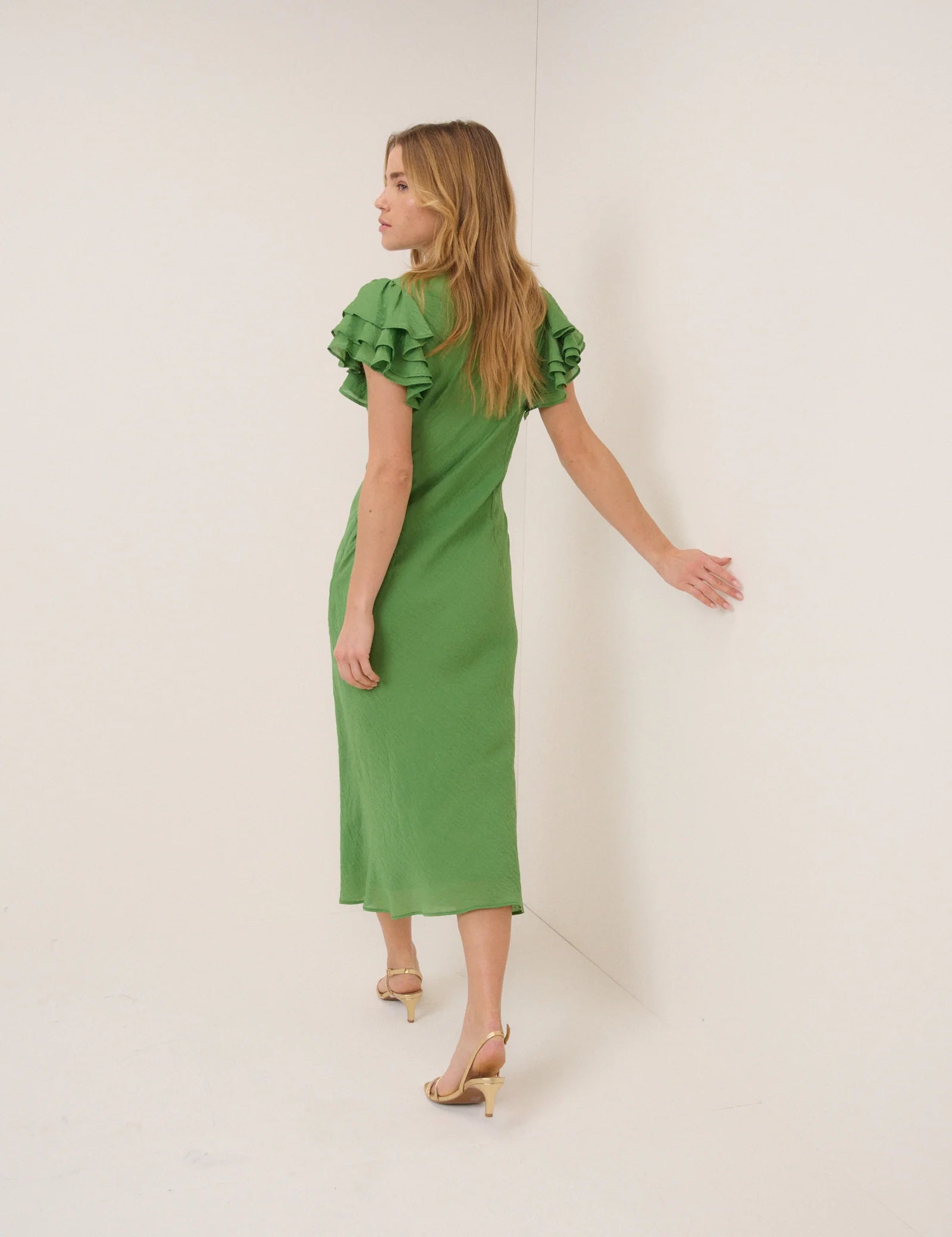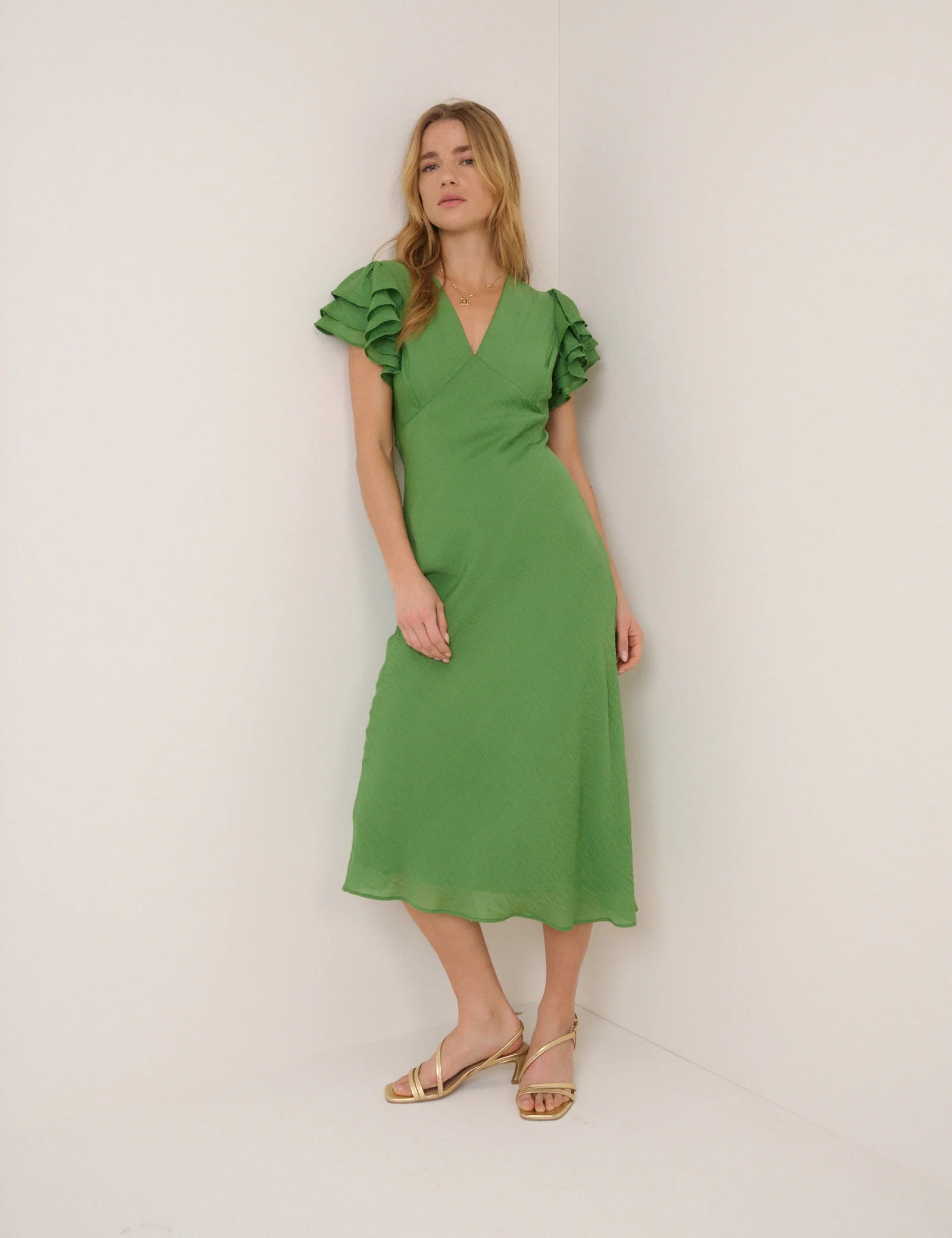 Nobody's Child Green Frill Sleeve Layla Midi Dress