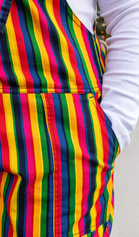 Stride out in style with these Rainbow Stripe Stretch Twill Dungarees! Featuring a fun and eye-catching rainbow stripe pattern, these dungarees move with you and ensure maximum comfort and flexibility, meaning you can keep on dancing the night away! Go wild and express yourself!